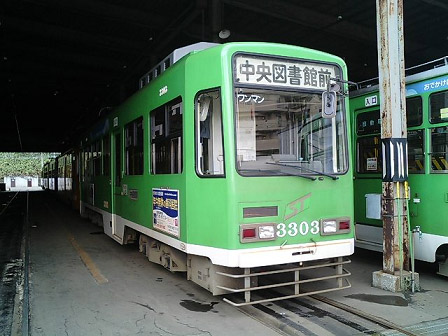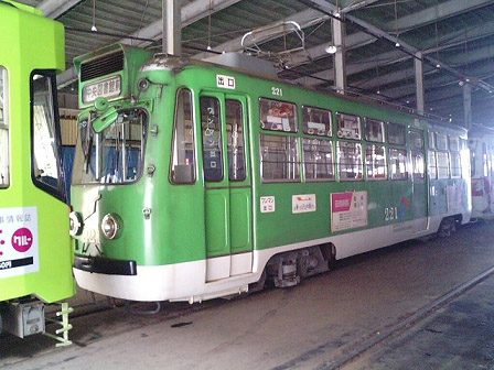 昭和36年に製造された車両で、車両数は251、252、253、 254、255形の5両です。またこの車両は札幌の市電初ともいえ る電気部品を流用して造られた車両でもあります。 |