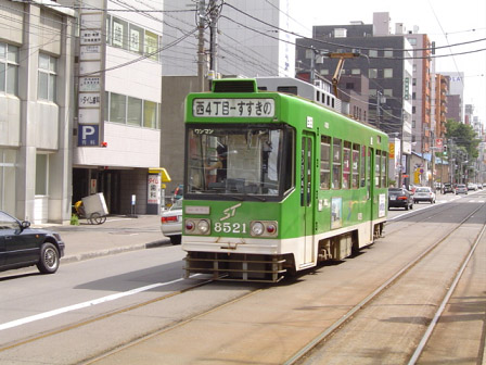 昭和60~63年かけて製造された車両で、車両数は8501、850 2、8511、8512、8521、8522の6両です。 この車両は道内で造られた車両ではなく、本州の川崎重工で造られた車 両です。また、この車両の特徴はVVVFインバーター制御による、最 新式のものを取り入れ、外形の造りも角張りがあり、窓も大きくなって おります。 |