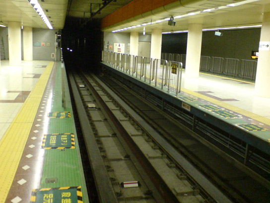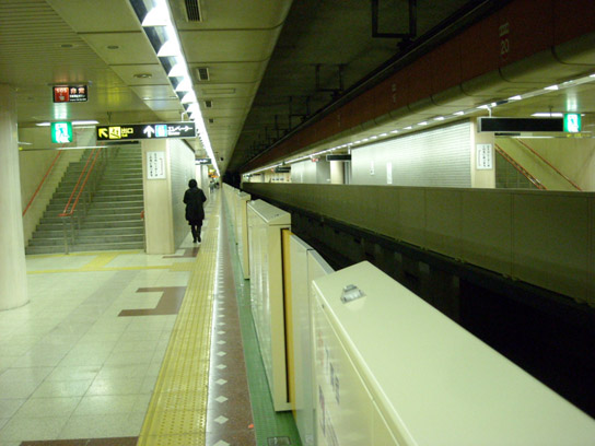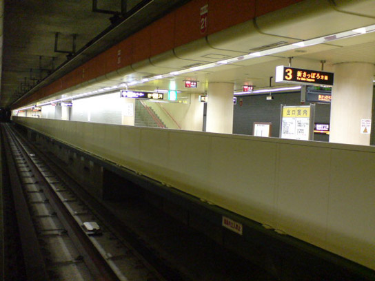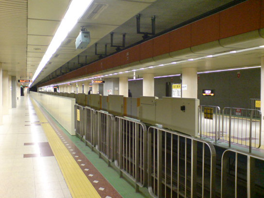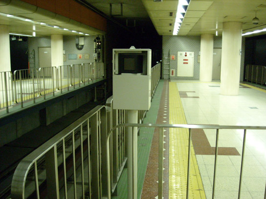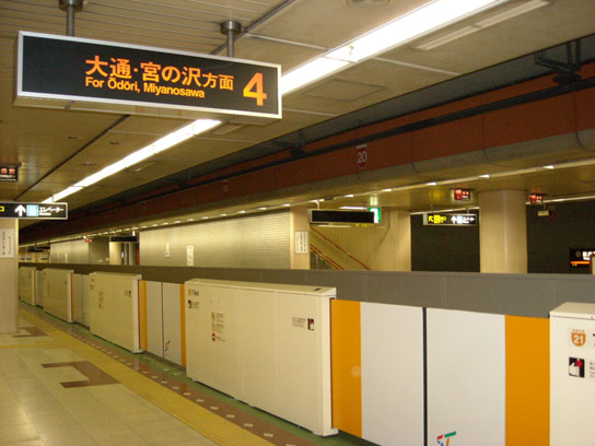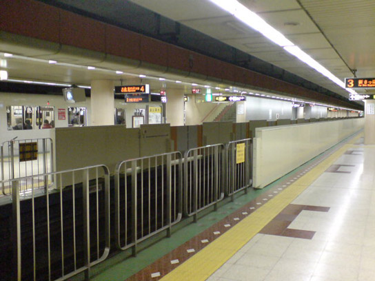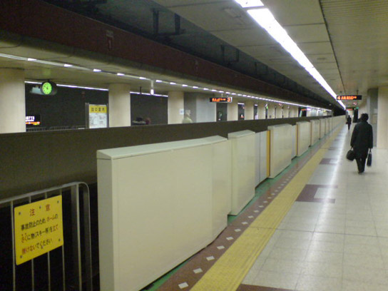 訪問から1ヶ月経たぬうちにここまで変革していました^^; 札幌の地下鉄駅とは思えな い雰囲気で、個人的にはホーム柵が設置されたせいか中線が暗く感じました。柵の壁の 色はクリーム色でドアの部分は8000形のデザイン合わせた白地にオレンジ色です。 あと、気になったのが何故か3番ホームだけドアがなく壁一面で仕切られていました。 他にも目新しい機器が備わっていて、どれもこれも目移りしてしまう気分です。稼動し ている姿を早く見てみたいものです^^